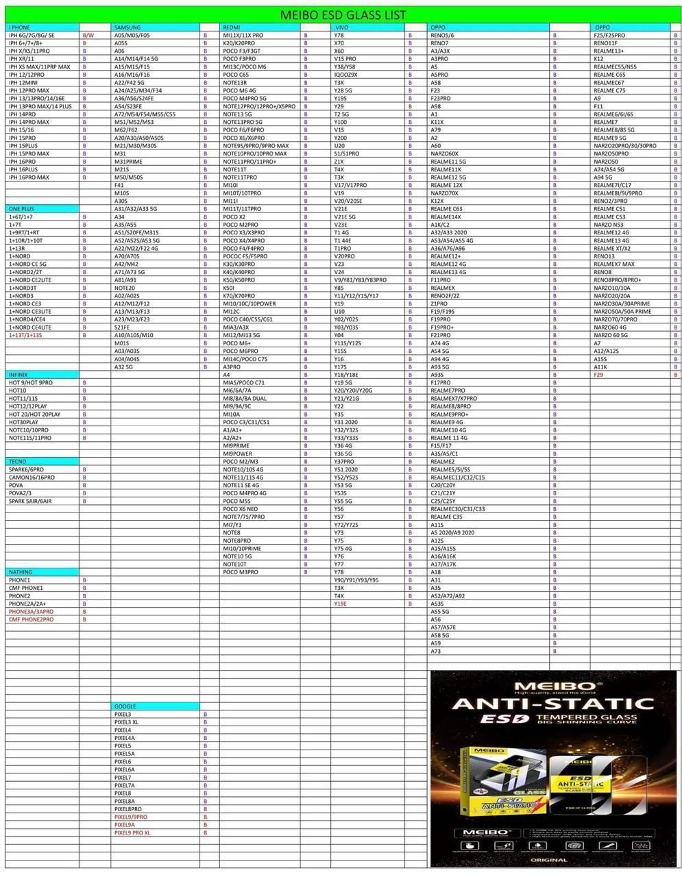 MEIBO ANTI-STATIC HIGH QUALITY TEMPERED GLASS