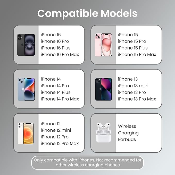 The Portronics Quikk 15W Qi2 Certified Fast Charging Wireless Charger delivers efficient and rapid wireless power for iPhone models 12 through 16, including Plus, Pro, and Pro Max variants, as well as all Qi-enabled smartphones and earbuds. Its magnetic compatibility ensures precise alignment and stable charging, minimizing energy loss and device overheating. Compact and sleek in black, this charger provides a reliable, high-speed charging experience while maintaining device safety and convenience for everyday use.
